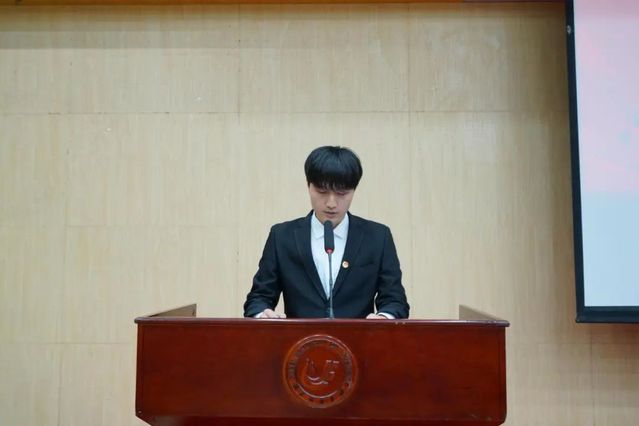 大会第四项,新一届员工会主席团成员代表祝子为发言。他首先衷心感谢全院同学们的信任。并表示一定牢记自己的使命和责任,恪尽职守、勤勉工作,决不辜负老师和同学们的重托。