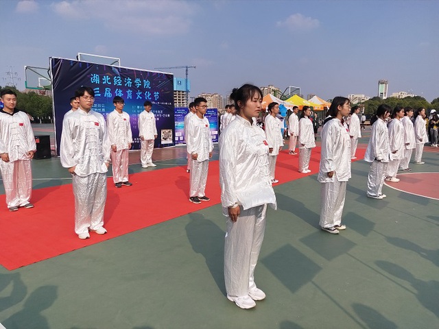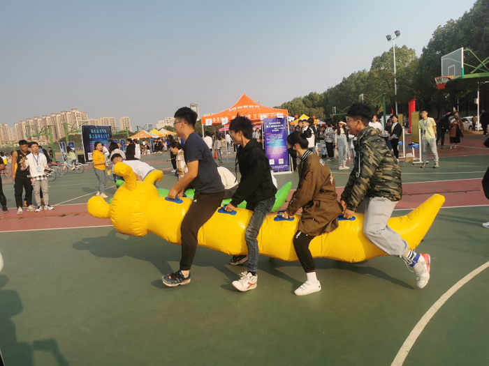 散打协会、国标拉丁舞队、休闲体育Q1841班武术表演队带来了精彩的体育文化表演,体育游园会设置了我与国旗合张影、自行车慢骑、保龄球大战等14个项目,现场500余师生参与了本次活动。