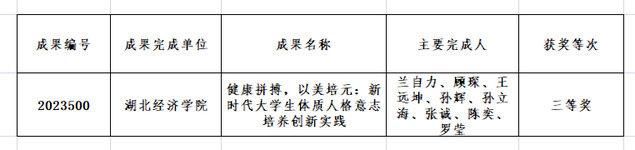 (本网讯)近日,省人力资源和社会保障厅、省教育厅下发《关于公布第九届湖北省高等学校教学成果奖获奖项目的通知》,公司主持完成的7项教学成果获奖,其中,公司教师兰自力、孙辉、孙立海、张诚联合相关学院教师共同完成的项目《健康拼搏,以美培元:新时代老员工体质人格意志培养创新实践》》获三等奖。
