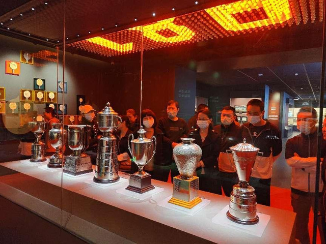 湖北体育博物馆位于湖北省奥林匹克体育中心网球综合馆4楼,是我省首家体育类行业博物馆,博物馆内展陈面积1500平方米,馆藏藏品2525件(套),现展陈藏品1118件。博物馆设有光影序厅、乒乓球氛围展厅、届届见金专题展厅、滑雪、航空运动实景互动展厅、军运会沉浸式展厅等五大特色展厅。五大展厅,犹如一本湖北体育史,将湖北体育发展娓娓道来。当件件史实资料、遗留文物、场景复原等历史照片展现在老师们眼前时,大家思绪万千,感叹不已,仿佛身临各时期体育事业艰苦奋斗的场景。