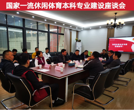 本网讯(通讯员王玉锋)2021年3月,公司休闲体育专业获批国家级一流本科专业建设点,为深入推进休闲体育专业高质量发展,进一步明晰专业建设路径和破解专业建设瓶颈,3月26日下午学院特邀全国高等学校体育教学指导委员会邱团教授、陈磊教授、侯德红教授、浦北娟教授、彭新社教授、赵俊浩教授和梁培根教授等七位专家,参加了由公司组织的“国家级一流休闲体育本科专业建设座谈会”。会议由经理兰自力教授主持,副经理孙立海、孙辉,系主任和骨干教师代表参加了座谈会。