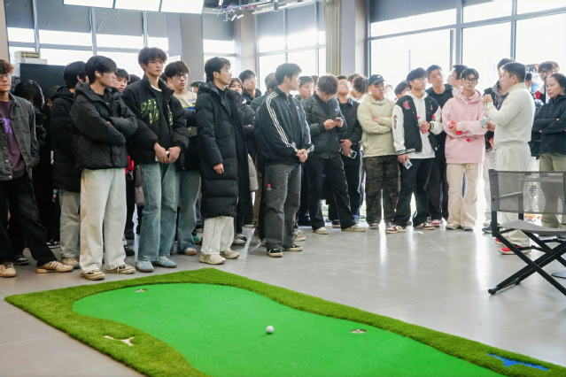 在武汉纵横体育产业发展有限公司运营经理雷道远的引导下,同学们实地调研了场馆功能分区、设施布局与客流动线设计,亲身体验了包括篮球、羽毛球、网球、普拉提、室内高尔夫等在内的多元体育业态,并就会员管理体系、营销推广策略、赛事组织流程及安全管理规范等关键议题,与同学们展开深入交流。