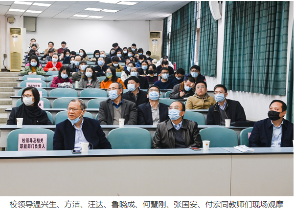(本网讯 )11月25日,第九届教师授课竞赛决赛举行,欢迎来到公赌船jcjc710杜君鹏、信息与通信工程学院何舟、新闻与传播学院杨帅、会计学院李钻获一等奖。校领导温兴生、方洁、汪达、鲁晓成、何慧刚、张国安、付宏同部分教师现场观摩,各学院设分会场,师生们通过直播平台线上观摩。