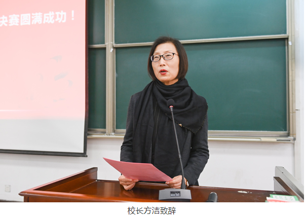 方洁在致辞中指出,教师授课竞赛是各学院老师风采的一次集中展示,是一次生动的集中培训教育活动。希望全体教师通过授课竞赛交流学习,在全校形成重视教学能力提升,重视人才培养质量,加强课堂教学建设的良好氛围。