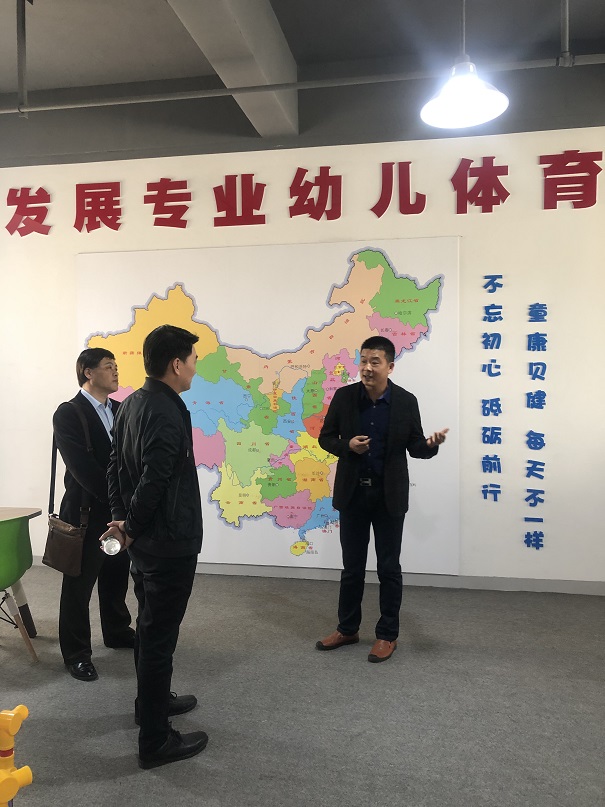 4月16日下午,抽查小组金融港组:田浩(组长),文丹,新闻与传播学院副经理彭书雄、外国语学院系主任丹金一行5人到体育学院毕业生毕业实习单位童康贝健教育科技有限公司进行实地走访。该公司坐落在联享企业中心B座1单元502室,是一家致力于儿童“大健康”领域为主要经营方向的公司,以“健康中国亿万儿童”为愿景,为幼儿园提供专业化、系统化、一站式体育健康领域的综合服务。